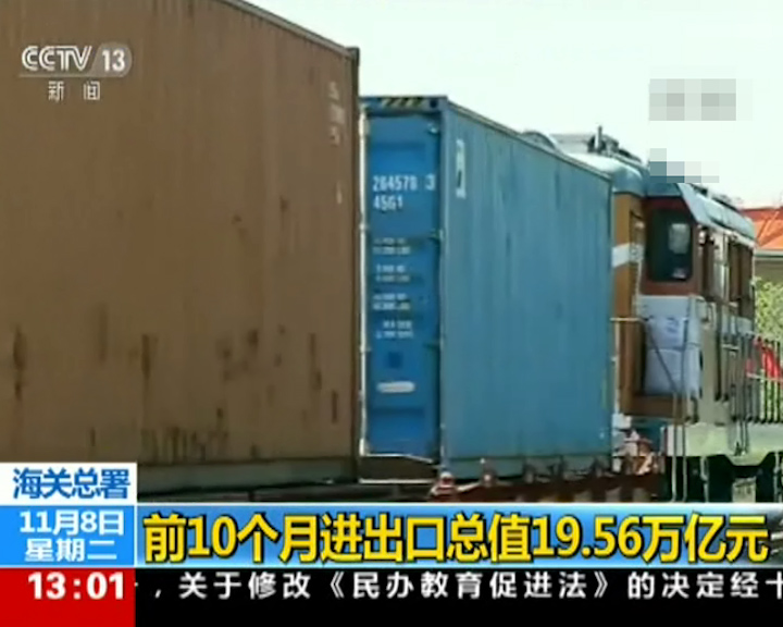 海关总署:今年前10个月我国进出口总值19.56万亿元