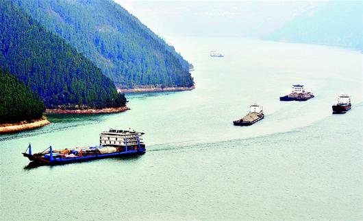 图为:依托“黄金水道”,发展水上交通,同时严格保护长江生态。图为巴东县官渡口镇长江巫峡口水域。(梁勇 摄)