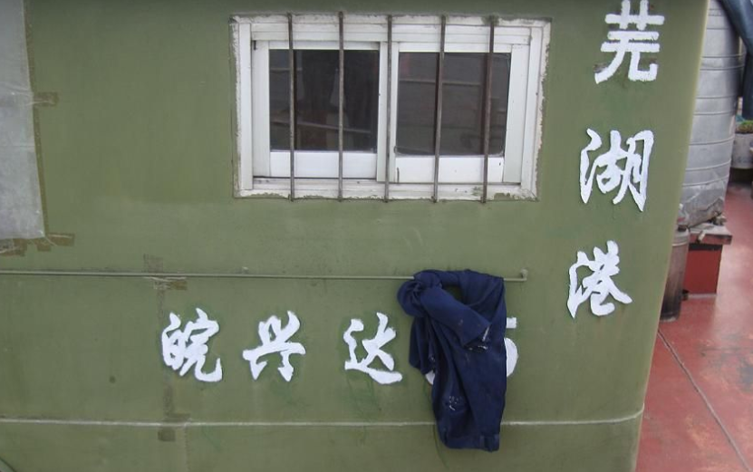 (注:图为2013年扬州海事局查处的一艘违规遮挡船名船舶)