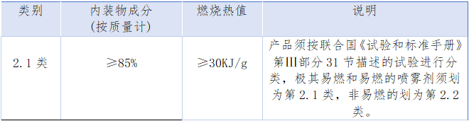 注:气雾剂应有意外释放保护装置,当该内装物仅含有无毒成分且容量不大于50ml时,可以不按照危险货物进行运输。