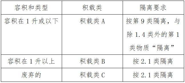注:废弃的气雾剂运输,只限国际间短途航线运输。只有经过有关当局批准,方可在国际间长途航线运输。