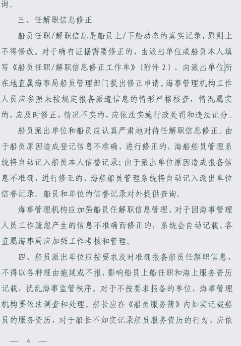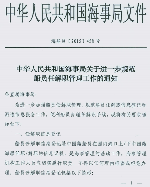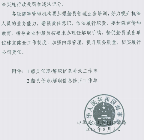 中华人民共和国海事局关于进一步规范船员任解职管理工作的通知