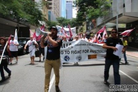 据澳大利亚海事联盟(MUA)消息,当地时间2月15日,超过400名工人上街游行抗议力拓解雇澳大利亚海员,并雇佣时薪仅有2美元的外国工人。据悉,此次抗议游行的导火索来自力拓子公司太平洋铝业解雇“CSL Melbourne”散货船(船型 船厂 买卖)上的5名澳大利亚船员。