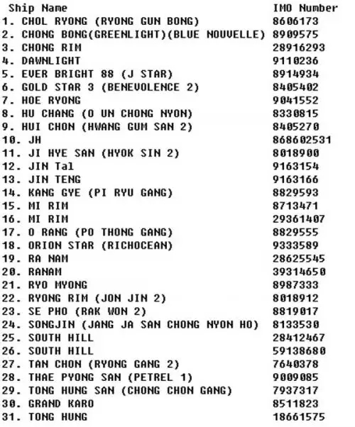 朝鲜被制裁船舶名单共含31艘船,多为大连地区船东的船舶。