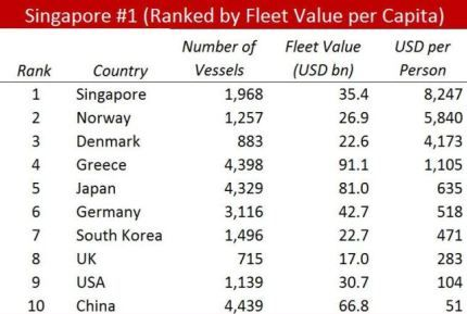 在近日举行的2016年新加坡海事周期间,作为区域内航运业的重要枢纽,新加坡这一城市国家获得了高度赞誉。新加坡确实有理由庆祝,因为最新数据统计显示,新加坡船东虽然控制了不到 2000艘远洋运输船,但船队总价值却达354亿美元,相当于新加坡人均拥有超过8000美元船舶资产,成为人均拥有船舶资产世界排名第