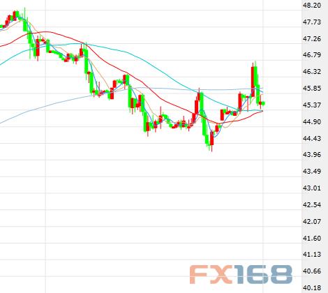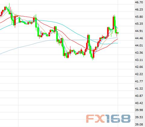 (布伦特原油期货价格60分钟走势图,来源:FX168财经网)