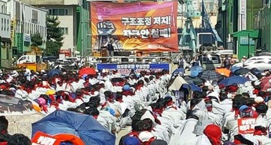 当地时间周四下午1点,三星重工工人开始进行为期4个小时的局部罢工,要求三星重工取消其重组方案。这是身处危机的韩国造船业今年遭遇的第一次罢工。