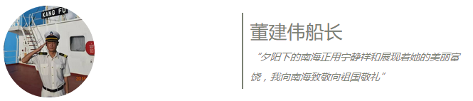 夕阳下的南海正用宁静与祥和展现着她的美丽与富饶,作为一名中国船长,航行于自己国家的海域,内心总是充盈着别样的情怀,向我们的南海致敬,向我们的祖国敬礼!