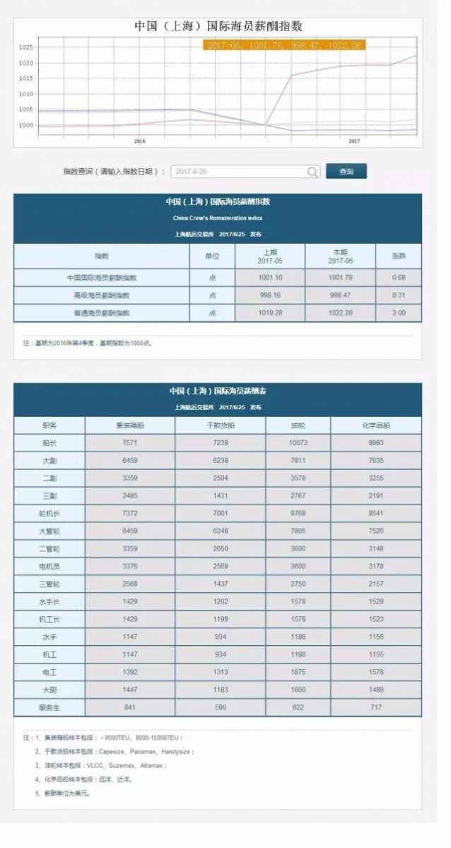 中国(上海)海员薪酬指数的发布,将为政府部门、船舶管理公司、船东、船员劳务公司以及船员等各方提供重要的信息参考。