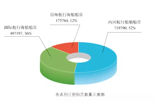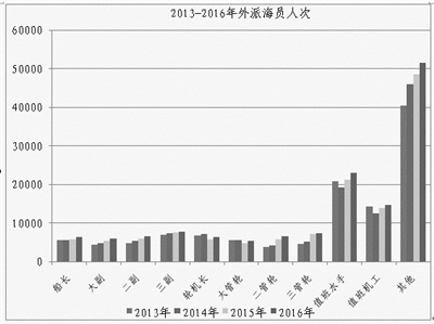 其中,2016年,我国新增注册国际航行海船船员26685人,新增注册沿海航行海船船员7286人。截至2016年12月31日,我国共有注册国际航行海船船员497197人,我国持有国际航行海船适任证书的船长15426人,持有国际航行海船适任证书的轮机长、大副、大管轮、二副、二管轮、三副、三管轮等高级船员100943人,值班水手和值班机工146957人。