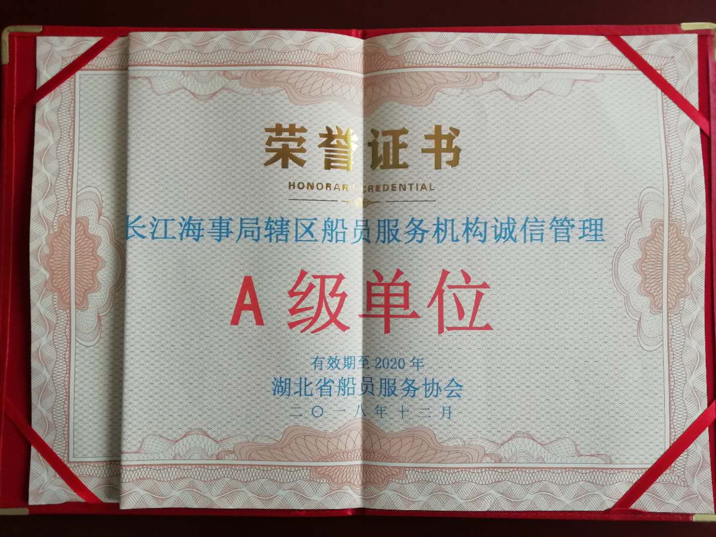 【喜报】热烈祝贺我司荣获“船员服务机构诚信管理A级单位”