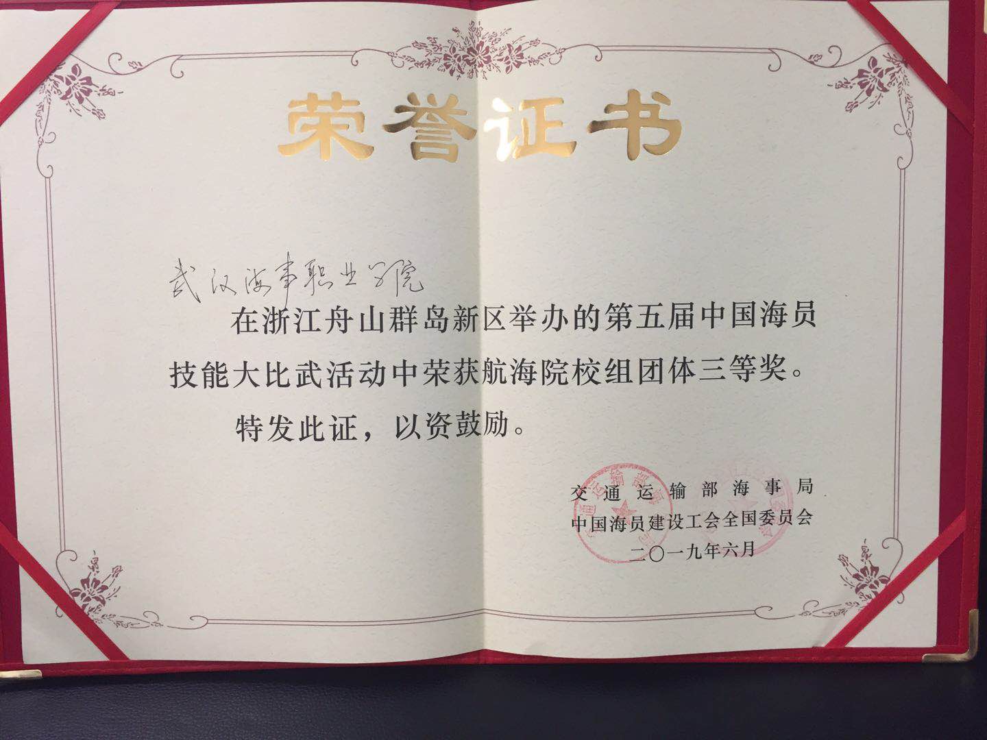热烈祝贺武汉海事职业学院在第五届中国海员技能大比武中荣获佳绩