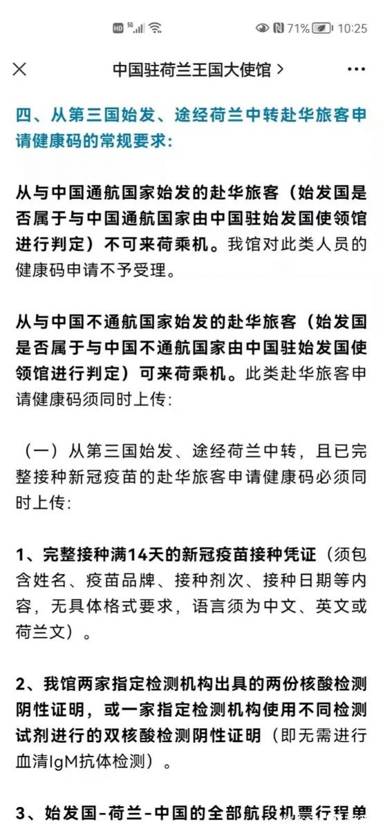 我们同事9人,有三个一直阴性,2月10日回国,另外两个是转阴之后2月24日回国的,现在我俩也回来了。但还有两个同事因为阳性还在荷兰,他俩很崩溃,因为身体没什么症状,但检测就是阳性,不知道什么时候回来,只能默默为他们祈祷。