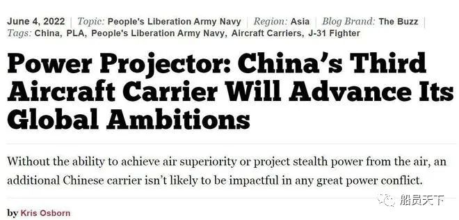 当然,美媒还是偏见的认为003航母又是“照抄”了福特级航母的设计,不然不会这么相像。而且中国海军即便是服役三艘航母,其整体实力肯定和美国海军的十一艘航母差的很远。而且更重要是,虽然第三艘航母距离下水就是近期的事情,但是解放军海军舰载航空兵缺乏第五代隐形战机,与之相比是美国海军的F-35C隐形战机,已经列装美国航母正式服役。至于中国隐形舰载机“歼31战机”的动向也是非常少,而且尚不清楚这种新型隐身战机能否与强大的 F-35 相媲美。