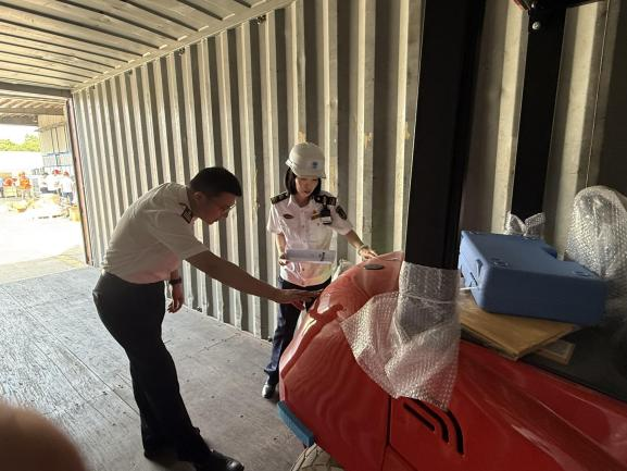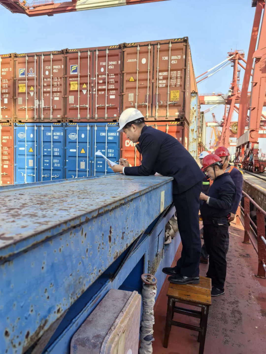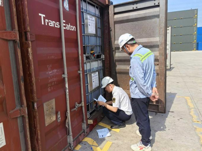 联合海关检查谎报危险货物。江阴海事局 陈尚 摄
